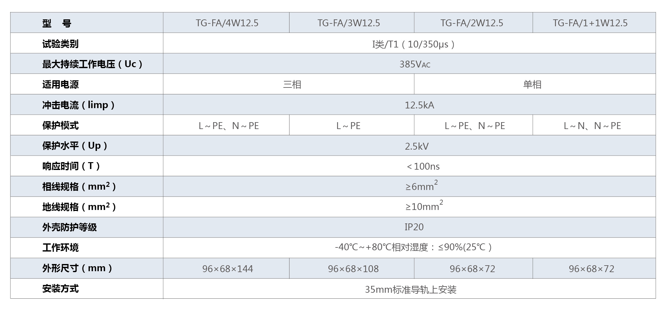 TG-FA系列電源間隙型電涌保護(hù)器是一種電壓開(kāi)關(guān)型電涌保護(hù)器(l級(jí)分類(lèi)試驗(yàn)10/350us),一般應(yīng)用于建筑物總配電箱進(jìn)線(xiàn)端,作為電力系統(tǒng)的第一級(jí)浪涌電流攔截裝置,即安裝在LPZOA區(qū)與LPZ1區(qū)的交界處為雷電防護(hù)等級(jí)C級(jí)、D級(jí)的第一級(jí)防雷裝置,雷電防護(hù)等級(jí)按照防雷裝置攔截效率E值確定。