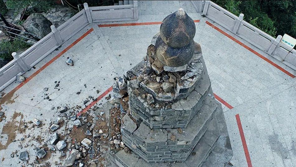 雷擊泉州凌霄塔致一角倒塌,受損嚴重