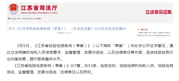 3月5日,《江蘇省檢驗(yàn)檢測條例(草案)》正式向社會公開征求意見。這部共7章53條的法規(guī)草案,針對當(dāng)前檢驗(yàn)檢測行業(yè)存在的低價競爭、資質(zhì)掛靠、數(shù)據(jù)造假等亂象,從機(jī)構(gòu)資質(zhì)、監(jiān)督管理、法律責(zé)任等多個維度作出系統(tǒng)規(guī)范,為行業(yè)健康發(fā)展提供法治保障。一、明確監(jiān)管范圍 實(shí)現(xiàn)全領(lǐng)域覆蓋草案創(chuàng)新性地將檢驗(yàn)檢測機(jī)構(gòu)分為兩類實(shí)施監(jiān)管:行政許可類:包括建設(shè)工程質(zhì)量、公路水運(yùn)工程、農(nóng)產(chǎn)品質(zhì)量安全、雷電防護(hù)裝置等五大重點(diǎn)領(lǐng)域備案監(jiān)管類:涵蓋消防設(shè)施維護(hù)保養(yǎng)檢測等需日常監(jiān)督的機(jī)構(gòu)這種分類監(jiān)管模式既確保重點(diǎn)領(lǐng)域嚴(yán)格管控,又實(shí)現(xiàn)行業(yè)監(jiān)管無死角,為全國檢驗(yàn)檢測行業(yè)立法提供了"江蘇樣本"。二、劍指行業(yè)頑疾 出臺硬核措施針對當(dāng)前突出的行業(yè)亂象,草案祭出組合拳:嚴(yán)禁低價競爭:首次以立法形式明確禁止不合理低價服務(wù),從源頭遏制"劣幣驅(qū)逐良幣"強(qiáng)化過程管控:要求原始記錄和報(bào)告存檔不少于6年,確保檢測活動可追溯壓實(shí)平臺責(zé)任:網(wǎng)絡(luò)交易平臺需審核機(jī)構(gòu)資質(zhì)并公示信息,構(gòu)建線上線下一體化監(jiān)管體系三、創(chuàng)新監(jiān)管機(jī)制 提升治理效能草案單設(shè)"監(jiān)督管理"專章,推出三大創(chuàng)新舉措:信用監(jiān)管:建立分級分類監(jiān)管制度,根據(jù)信用評價動態(tài)調(diào)整檢查頻次聯(lián)合懲戒:對出具虛假報(bào)告等嚴(yán)重違法行為,最高處以10萬元罰款并吊銷資質(zhì)閉環(huán)管理:形成"資質(zhì)許可-過程監(jiān)督-違法懲處"的全鏈條監(jiān)管閉環(huán)四、重典治亂 違法成本顯著提高法律責(zé)任章節(jié)凸顯"最嚴(yán)處罰"導(dǎo)向:對超范圍出具報(bào)告行為,設(shè)3-5萬元罰款并沒收違法所得對出具虛假報(bào)告的"零容忍":機(jī)構(gòu)罰5-10萬元,責(zé)任人罰1-5萬元建立"資格罰"制度,對情節(jié)嚴(yán)重者直接吊銷資質(zhì)許可證五、促進(jìn)行業(yè)高質(zhì)量發(fā)展在嚴(yán)格監(jiān)管的同時,草案專設(shè)"發(fā)展與促進(jìn)"章節(jié),通過:推動檢驗(yàn)檢測技術(shù)研發(fā)和標(biāo)準(zhǔn)創(chuàng)新鼓勵機(jī)構(gòu)專業(yè)化、規(guī)?;l(fā)展支持檢驗(yàn)檢測服務(wù)業(yè)集聚區(qū)建設(shè)這一立法將有效解決當(dāng)前檢驗(yàn)檢測市場"小散亂"問題,推動行業(yè)從價格競爭轉(zhuǎn)向質(zhì)量競爭。《江蘇省檢驗(yàn)檢測條例》的制定,標(biāo)志著檢驗(yàn)檢測行業(yè)監(jiān)管進(jìn)入法治化新階段。通過建立"嚴(yán)準(zhǔn)入、強(qiáng)過程、重處罰"的監(jiān)管體系,必將有力遏制行業(yè)亂象,為經(jīng)濟(jì)社會高質(zhì)量發(fā)展提供更可靠的檢驗(yàn)檢測服務(wù)保障。社會各界可積極參與征求意見,共同完善這一重要立法。